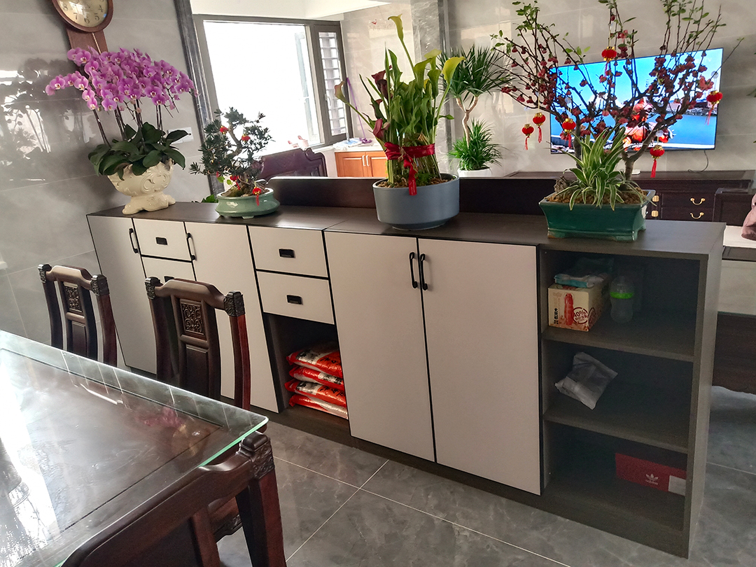 矮柜雖然小,也可以設計開放格,開放格用來擺放常拿的東西,封閉柜用來裝雜物,實用性滿分!