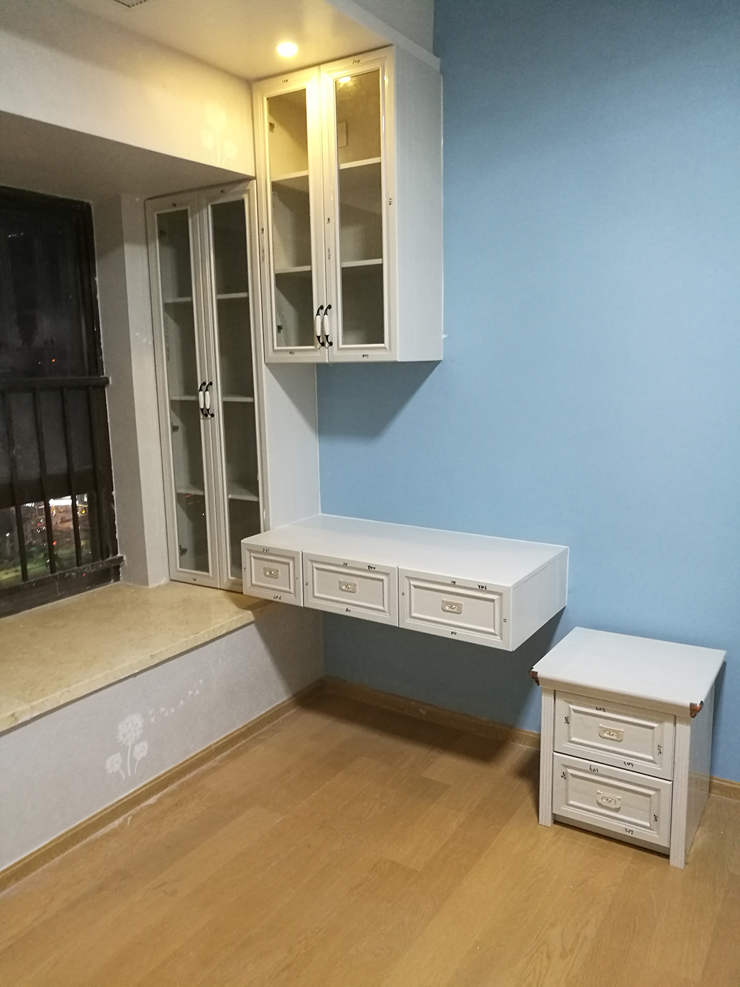 飄窗下方做小矮柜,也叫飄窗柜,柜子儲物,上方鋪軟墊抱枕方便休憩,一舉兩得。
