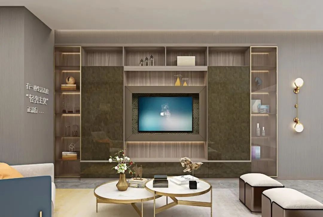 利用系統(tǒng)收納層架、儲物柜等不同組合的柜子,置于墻上,不僅收納空間增大,地面空間也更為寬闊。如在沙發(fā)墻上定制儲物柜,吊裝高度較高,不會讓空間顯得壓抑,同時也增加了空間收納。